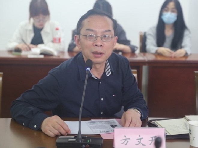院长方文开教授致欢迎辞。首场报告的发言人为南京大学陈新仁教授,他以人类命运共同体时代背景下跨文化语用能力的重要性为切入点,从4个维度对“全球胜任力”的内涵进行了阐述,并结合具体事例对“跨文化语用能力”所包含的六种能力进行了分析。此外,他还对大学外语教学中的跨文化语用能力培养提出了建议,指出可以通过“PBL教学法”、“仿真情景化教学”、“建立跨文化学习社区”等方式有效促进大学外语教学中学生的语用能力提升。