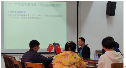 师生作了题为“文化英雄与文化史建构:21世纪美国非裔诗歌的历史书写”的学术讲座。讲座由方文开院长主持,学院教研团队全体成员及部分中青年教师、学生代表参加。