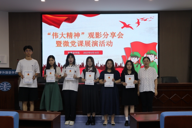 分团委书记陆芳为青马训练营及入党积极分子培训班的学生代表颁发结业证书,并对大家寄予殷切期望,希望大家能够通过本次观影展示活动更好地理解伟大精神,并落实到学习工作生活中,坚定理想信念,锤炼党性修养。