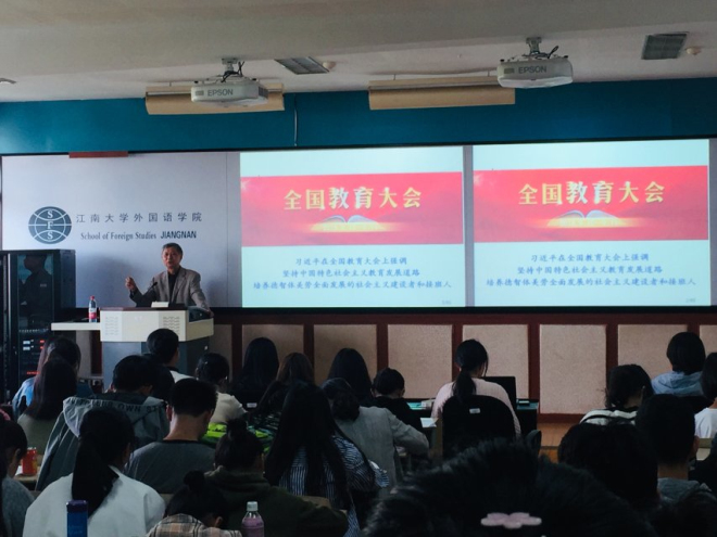 接着,娄国栋老师围绕“教育新理念、扎根新时代、学习新思想、放飞新梦想”四个方面对学生干部素养提升进行了讲解。他引用了习近平总书记在全国教育大会和北京大学师生座谈会上的讲话精神,解读了新时代教育的新理念,强调学生干部应坚定理想信念、厚植爱国主义情怀、加强思想品德、增长见识、培养奋斗精神、增强综合素质、加强和改进美育并弘扬劳动精神。当今新时代下社会主要矛盾发生了转变,中国科技迅速发展,要扎根新时代,贯彻学习新思想,坚持中国特色社会主义教育发展道路,培养德智体美劳全面发展的社会主义建设者和接班人。娄国栋老师还提到,大学是立德树人,培养人才的地方,是青年人学习知识增长才干的地方。一流的大学要有正确的政治方向,要坚持不懈的培养和弘扬社会主义核心价值观,要引导广大师生做社会主义核心价值观的坚定信仰者、传播者和践行者。要形成高水平人才培养体系、学科体系、教材体系和思想工作体系的重要性。娄国栋老师对学生干部提出了几点要求,希望大家能做到勤学、明辨、踏实;不断开阔眼界,发挥好学生干部的桥梁作用,发挥自身责任担当和榜样示范作用,弘扬奉献精神。