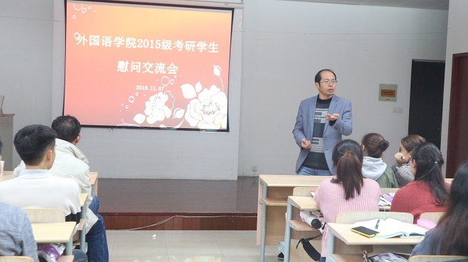 在文科楼A206召开了“2015级考研学生慰问交流会”。全院近100名考研学子参加会议,学院党委书记黄城芳、党委副书记副院长刘伯贤、副院长方文开及教务办王琰玲、学工办杨艳等老师出席会议。