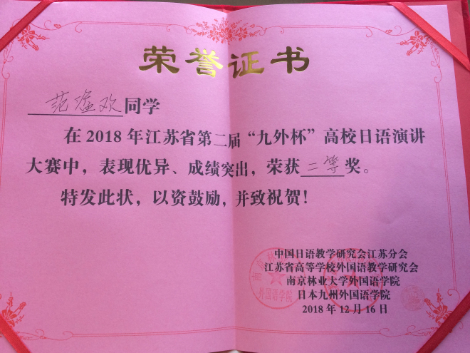 联合主办的江苏省第二届“九外杯”高校日语演讲大赛,在南京林业大学落下帷幕。参赛学子分别来自于南京大学、动漫屋
