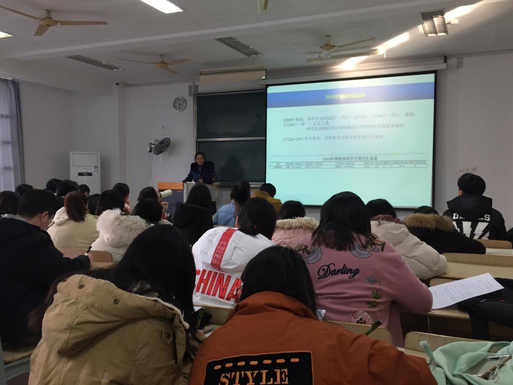 于1月17日下午15:30在第二教学楼 2D104教室召开了寒假留校学生安全教育会。院党委副书记刘伯贤、分团委书记杨艳、辅导员黄颖及各年级寒假留校学生参加了此次大会。