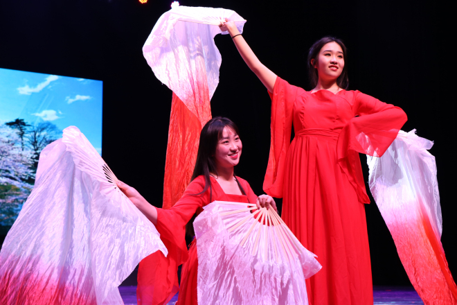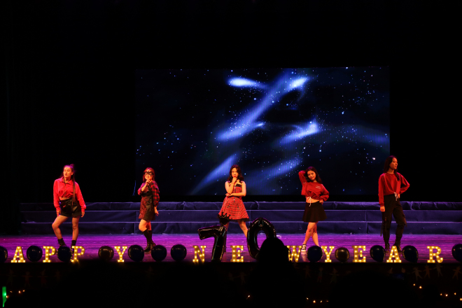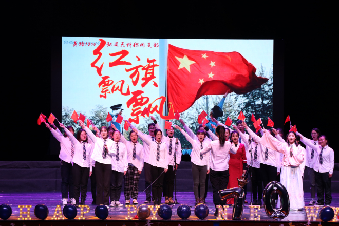 温暖大家庭的温馨氛围,同时表达了各位老师对同学们的衷心祝福和殷切的期望。接下来十三个节目依次精彩呈现,古风舞蹈《清平乐》舞步优美,极具中国风的优雅与端庄;小品《我是李焕英》既有风趣幽默,也有温情动人,演员精彩的表演让我们在欢声笑语中体会到真情的价值;八协音乐社带来改变歌曲《八月十五忆吃面兄弟》,年轻富有朝气的歌词和曲风点燃现场气氛;院艺术团带来的舞蹈《ADIOS》青春活力,展现了外院活力向上的学习风貌;由范喆老师和研究生张倩瑶带来钢琴小提琴合奏曲目《Adagio》,为大家呈现了音乐盛宴;英日文歌曲串烧《Oops,樱花》歌曲轻快活泼,展现了外院学子扎实的语言功底;19级带来了情景剧《来自江南的白雪》融合当下幽默喜剧元素,展现了19级新生极佳的创意;激情活力的爵士舞《bang bang》,活力四射,瞬间点燃全场同学的热情;器乐《大鱼海棠》宛转悠扬,中国风浓郁;18级特称团支部带来的红歌《红旗飘飘》为祖国母亲70华诞献礼;19级辅导员携手副班带来舞蹈《遇见青春》,轻快可爱的舞步洋溢着青春气息;钢琴伴舞《樱花》动听美妙,舞姿柔美动人;最后外院学生会为大家带来大合唱《我的秘密》,晚会在热烈的气氛中圆满结束。