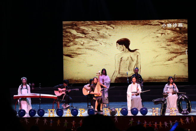 晚会开场由勿氧器乐团带来《董小姐》,气氛热烈,燃爆全场。随后,晚会正式开始,由外院各位老师录制的祝福视频展现了动漫屋