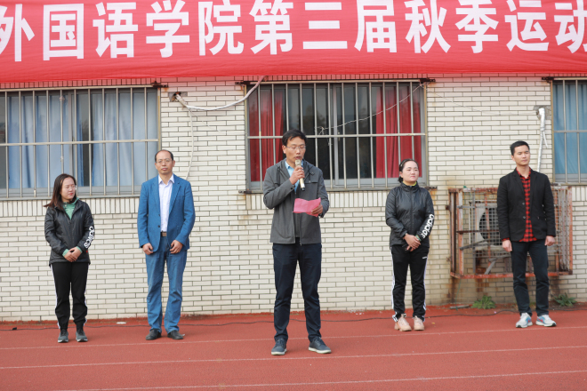 党委书记史志洪致开幕词。史志洪表示,秋季运动会是学院贯彻“立德树人”教育根本任务的重要载体,是青年学子展示青春风采的良机,也是收获和成长的重要舞台。在疫情防控阶段,大家要养成良好的生活习惯,加强体育锻炼,以昂扬的精神,强健的体魄助力战胜疫情。他希望运动员们能够赛出风度、赛出水平,裁判员、工作人员能够公正热情服务,并预祝本届运动会圆满成功。
