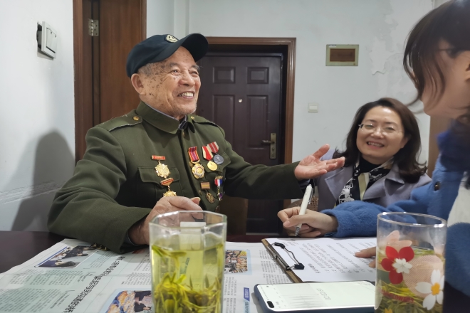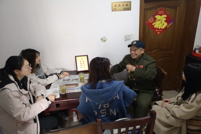 青年学生代表杨俊霞、徐昕、熊雪冰、揣皓博等四位同学前往无锡市梁溪区看我校退休教职工——许德山。学生代表为许老准备了慰问品,与许老进行了亲切的交谈,聆听许老抗战英雄事迹。
