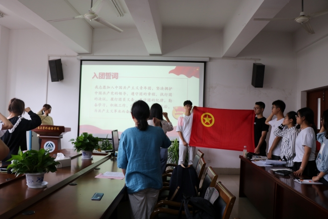 学院分团委书记陆芳发布了培训计划。她向学员介绍了此次培训班的安排,希望学员能够积极参与培训项目,端正学习态度,严肃认真的对待线上线下的学习和活动。盛晓妍同学作为本期学员代表进行发言。盛晓妍同学说:作为青年大学生要坚定对马克思主义的信仰,坚定跟党走的决心,为祖国的发展贡献青春力量。接着,全体学员在领誓人熊雪冰的带领下,重温入团誓词。誓词铿锵,学员们目光炯炯,怀揣着炽热的爱国情,五四精神在内心深处愈加热烈。