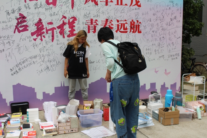 一天的二手市集活动圆满结束,大四同学的大学生活也即将画上圆满的句号。但是关于他们的点点滴滴,仍然留存在校园各处的跳蚤好物中,伴随着新一代的大学生活,点缀着永恒的青春年华。