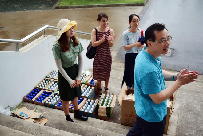 八月的天,时而骄阳似火,时而阴雨连绵,又是一年军训时。军训场上,外院学子斗志昂扬,在一片军绿色的海洋中,锻炼着坚韧不拔的意志,编织着五彩斑斓的梦。为进一步落实军训后勤工作,表达学院对同学们的关怀, 8月25日上午,学院党委书记黄城芳,学院党委副书记刘伯贤,班主任代表华芒老师、杨艳老师等冒雨慰问了动漫屋