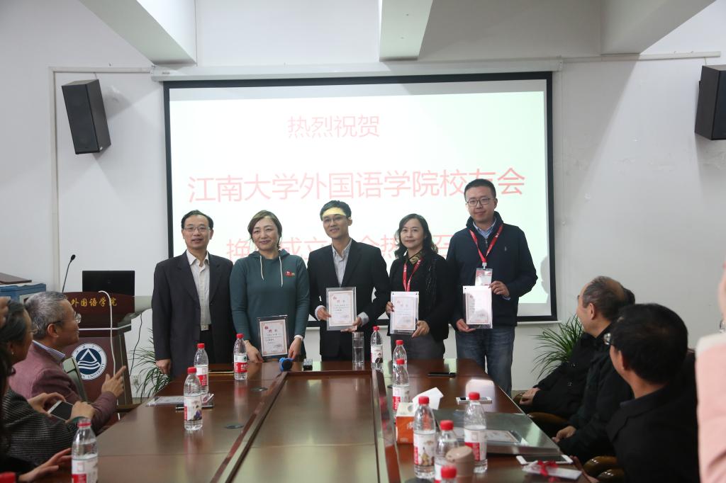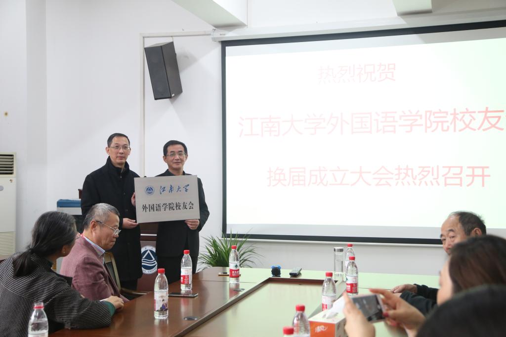 会议由日语0703的王贤校友主持。刘伯贤副书记介绍了本届校友会筹备过程,大会审议并通过了本届校友会章程及组织机构名单。龚晓斌院长为新一届校友会会长,现任常州车之翼动力科技有限公司总经理日语85级的杨良军校友授牌。朱义华副院长为本届校友会秘书长,现任道一天创文化节艺术发展有限公司副总经理英语931的许竹青校友授旗。黄城芳书记为校友会新一届组织机构成员颁发聘书。