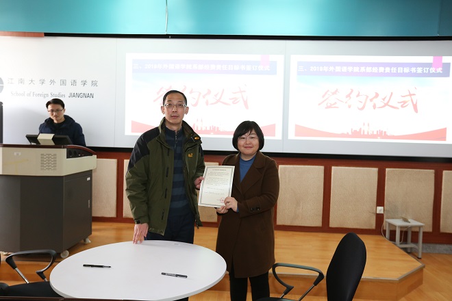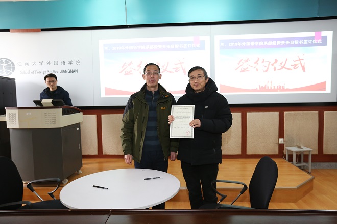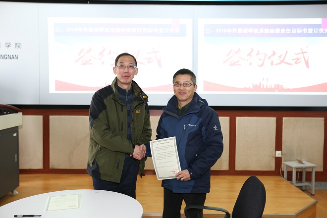 特别值得一提的是2018年初学院制定的科研经费计划,在全院老师的共同努力下,出色完成,较2017年有非常大的增幅,增长比例为全校第一。2019年是三年任期目标的最后一年,对照责任目标,学院认真分析了科研工作当前的形势,决心继续鼓足干劲,整体推进,争取有1-2项指标有所突破并达标。朱义华副院长明确了后期科研的主要任务,排出了项目时间表,引导教师关注从国家社科重大项目选题至国家社科基金项目等一系列申报工作,分解了学院在发表高水平论文、出版学术论著任务要求。作为具有彰显度的科研经费额度,更是受到广大教职工的关注,学院将经费指标在2018年完成情况的基础上分配到各系部,并由院长与系部负责人代表签订责任目标,希望各系统结合各自特点,有组织、有创造性地发挥教职工的工作积极性,以确保学院三年任期目标的落实。