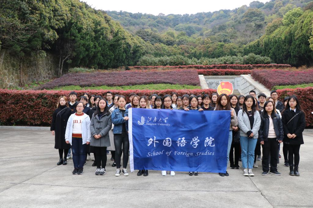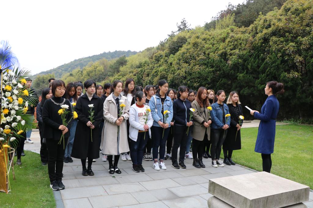 发展。随后,由学生代表庄重地向陵墓敬献了花篮。英语1705班的蔡艳娟同学作为学生代表诵读祭文,表达了对荣副主席的高风亮节、丰功伟绩、家国情结以及其崇高品格的追思与敬重,并表示我们应刻苦钻研,自觉将自己的命运同国家的命运紧密结合在一起。活动最后,参加祭扫的同学和老师们向陵墓鞠躬并静默哀思三分钟,结束后绕墓地一周并献上鲜花,表达对荣副主席及夫人的深切哀悼和敬仰。