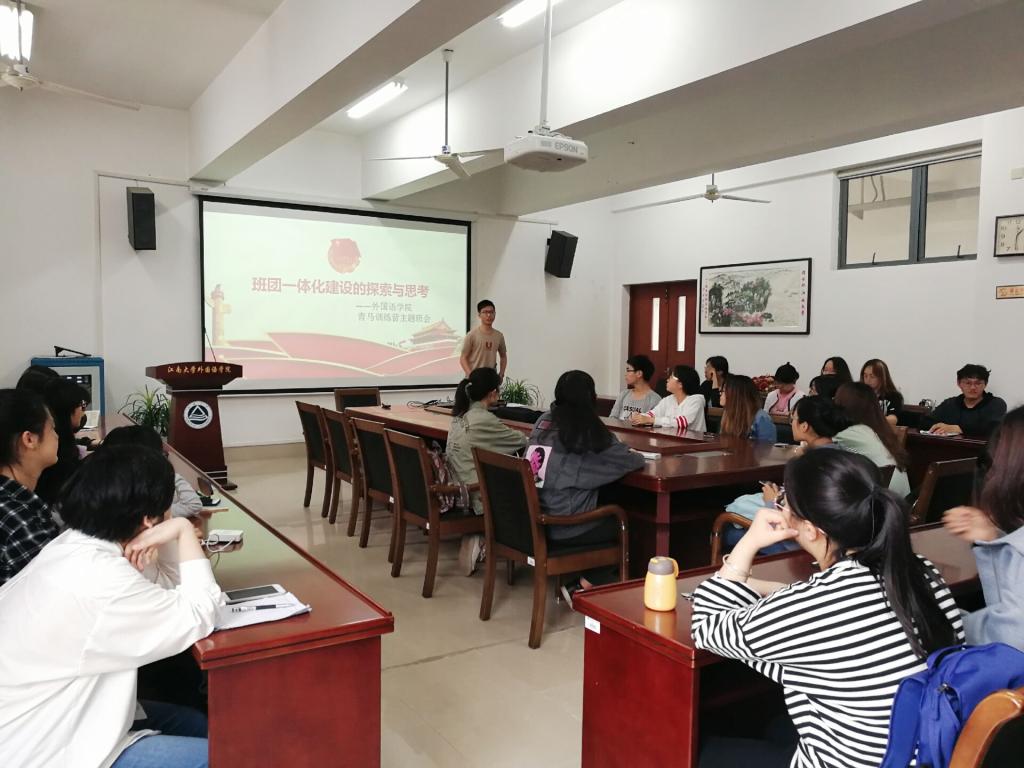 “青马训练营”主题班会在A349如期举行。在青马训练营班长李策同学的主持下,训练营全体学员对班团一体化建设的相关内容进行了讨论。