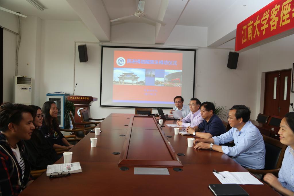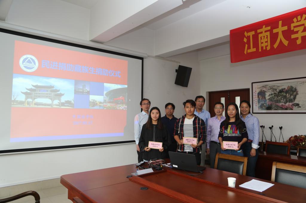 食品学院副院长杨瑞金手中接过了民进江大会员捐资提供的助学金共计6千元。作为民进江大社会公益活动的一项重要工作,此项助学行动先后在杨主委和新一届民进江大主委龚雁的领导下进行部署与实施,自2014年起历时四年,旨在于帮助三名少数民族学生顺利完成本科学业,既是让他们感受来自母校的关爱与温暖,也是鼓励他们在校努力学习,毕业后更好地服务于家乡的民族事业以及经济发展。捐赠仪式由动漫屋