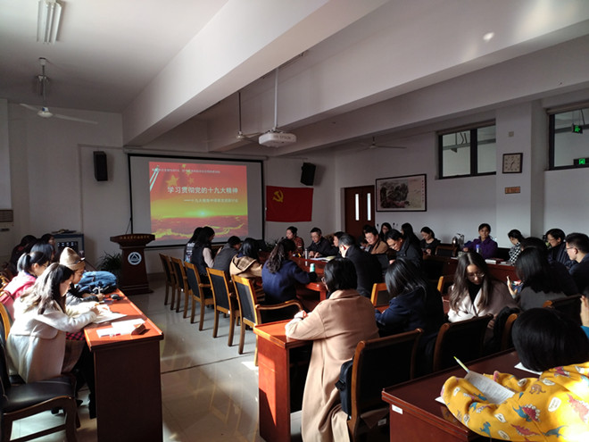 本次政治理论学习,不仅是专业翻译领域的探讨交流会,更是共建支部对十九大精神的再次集中学习。会上师生在充分肯定了报告译文的专业性、准确性和中国特色外,对于学习外语不仅能够传播弘扬中华文化,让世界更多人认同中国特色、认同中国价值,同时使中国走向世界舞台的中央充满了信心,感受到自身肩负着民族和国家赋予的重大历史使命。