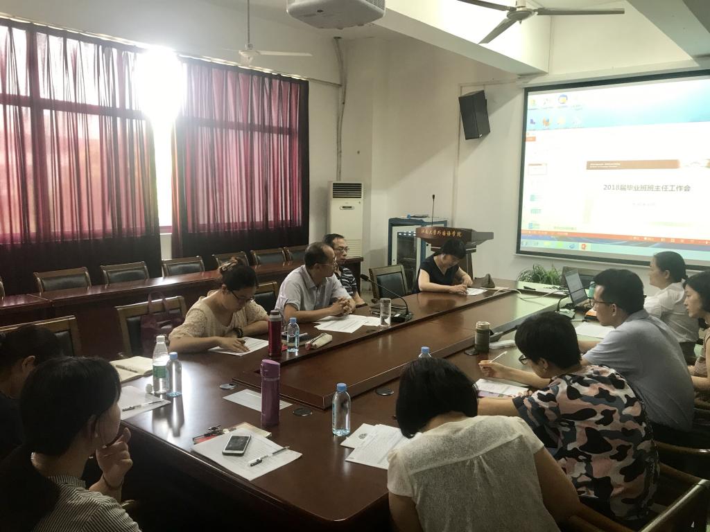 在A349会议室召开2018届毕业班班主任工作会议。院党委副书记刘伯贤主持会议,教学副院长方文开、毕业年级辅导员杨艳以及全体毕业班班主任老师参加会议。
