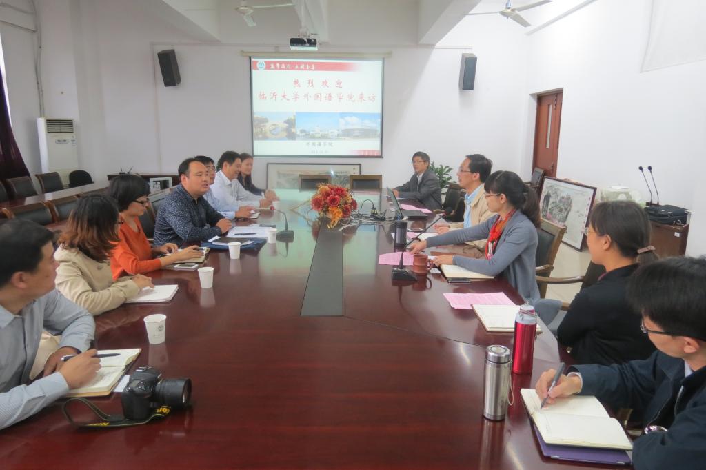 1030日,临沂大学动漫屋 彭洪君副书记、王晓军副院长一行前来动漫屋 访问交流。动漫屋 龚晓斌院长、李健雪副院长等院领导参加了交流座谈。龚晓斌院长向来访客人简要介绍了学院发展整体状况以及2014年教改新方案:以“听说、读写、翻译”三大模块进行课程设置,让学生根据自身的需求,选择相应的模块教学,提高相应的技能。座谈双方还就专业设置、教学实践环节、学科竞赛、学生管理团队建设等进行了相互交流。座谈结束后客人们到二教楼实地参观了我校大学英语自主学习中心。