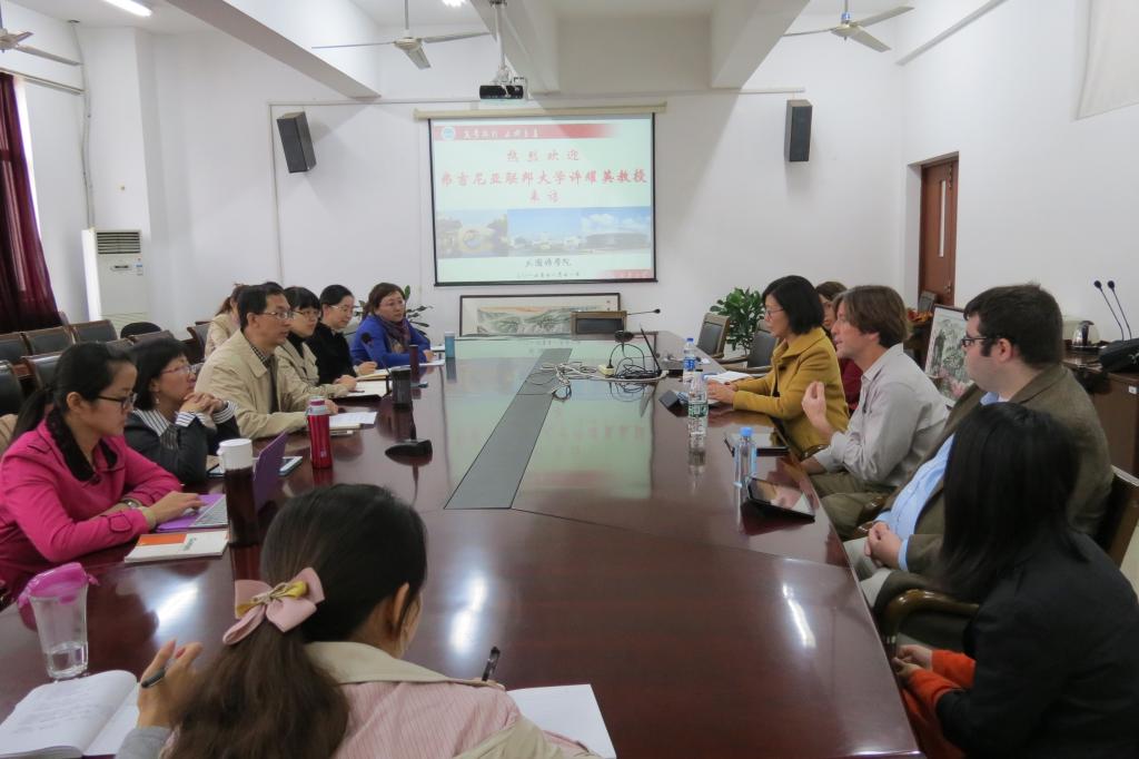 1111日,弗吉尼亚联邦大学许耀英教授团队一行五人前来动漫屋 交流访问。龚晓斌院长热情地接待了来宾并发言致辞,部分骨干教师参加了座谈。许教授的团队成员分别介绍了各自感兴趣的研究问题。双方就科研项目合作、相互访学交流、远程博士生培养计划等进行了热烈而坦诚的讨论。教师们认为与国外学术团队合作的探索与尝试有利于双方开拓思路,发现研究热点,共享优质资源,推动教师职业发展。