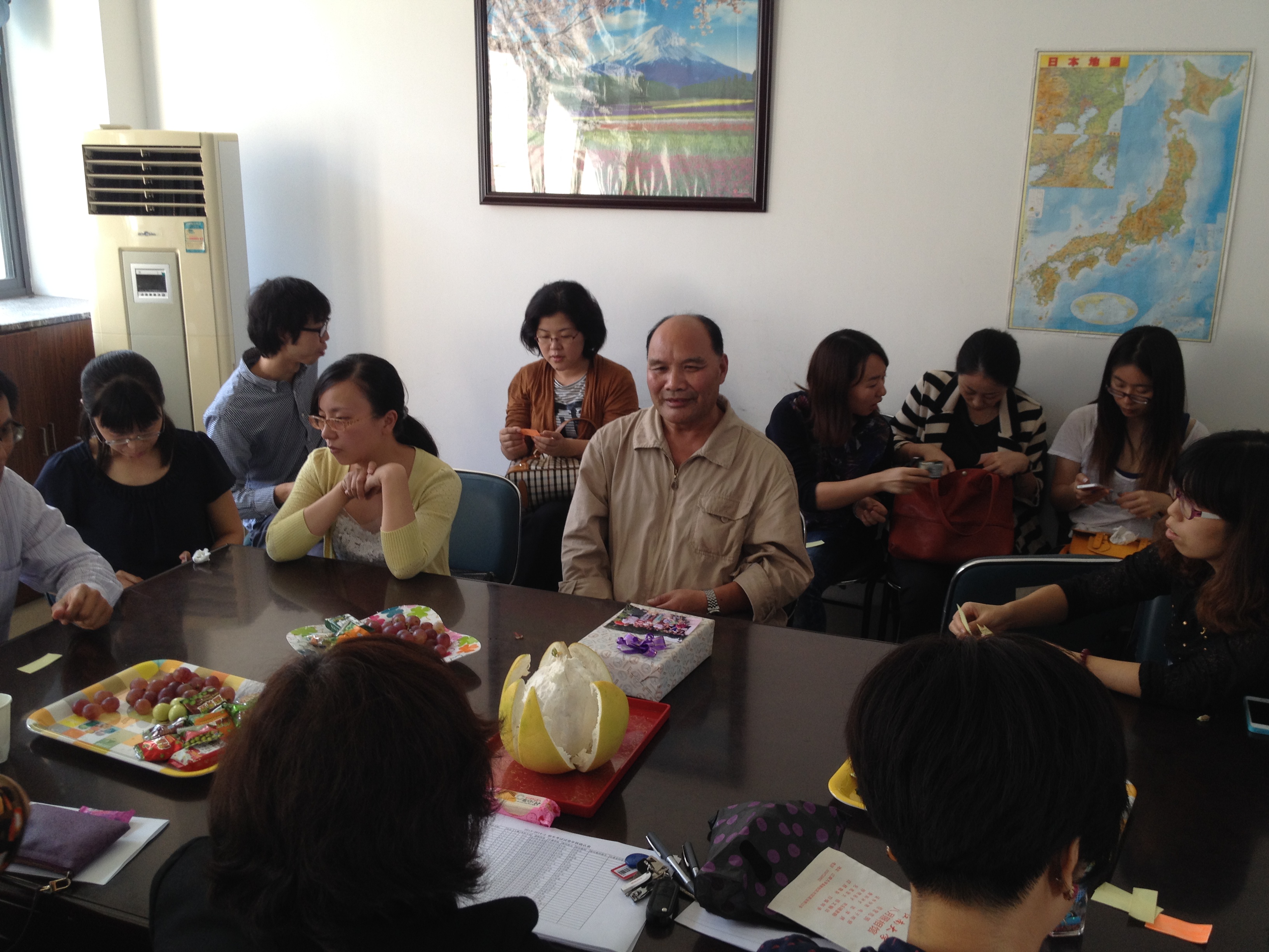 金秋时节,丹桂飘香。924日,日语系的全体教师欢聚一堂,为即将光荣退休的吴金明老师举办了一场简单却温馨的欢送会。会议由日语系党支部书记吴颖主持,动漫屋 党委书记周建中百忙之中参加了欢送会并代表日语系向吴老师赠送了礼物。周书记在欢送会上对吴老师多年来在教学一线的辛勤劳动和为教育事业兢兢业业甘愿付出却淡泊名利表示了感谢,同时也希望吴老师今后能一如既往地关心学院,关注学院的发展,祝愿吴老师退休生活健康愉快。之后,吴金明老师也回忆了自己多年教学工作的点点滴滴,认为在动漫屋 工作是人生一段美好的经历,对学校领导的关怀、同事的关心帮助心存感激。随后日语系的各位老师也畅所欲言,回忆与吴老师一起工作的美好时光,表达了对吴老师的感激和留念。最后,大家将自己对吴老师的祝福写进心愿卡,装进心愿瓶,一并送给了吴老师,祝愿吴老师退休生活老有所乐。
