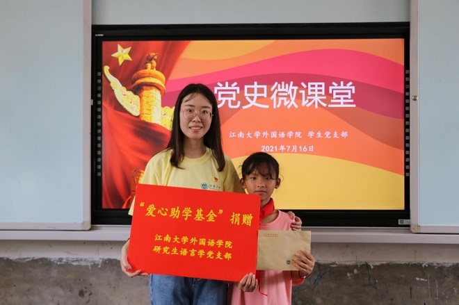 学生与当地孩子们连线,开展在线教学。随后,研究生党支部书记们为独洞小学的孩子们上了一堂意义深刻的党史微课,自1921年南湖游船上党的建立讲起,从陈望道先生《真理的味道非常甜》的故事与长征英雄的故事说开去,带领孩子们回顾了建党百年历程中的闪光事迹,加深了他们对党史的理解和体悟。