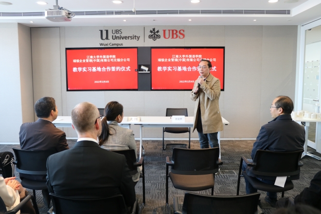 院长方文开、学院调研员黄城芳、学院党委副书记刘伯贤、瑞银企业管理(中国)有限公司无锡分公司执行董事张晶等共同出席了签约仪式。