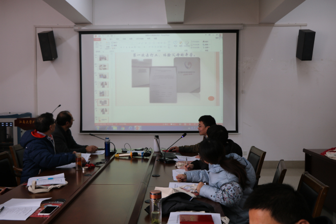 在经验分享环节,获得就业先进奖的彭方针老师分享了自己的班主任工作经验。彭老师为大家展示了班主任工作期间积累的工作材料,然后围绕“明确班委工作职责”、“有效调动班委工作积极性”以及“开展特色主题班会”三个方面为在座的老师进行经验分享。接着英语1701班主任胡燕萍老师进行分享。胡老师分享了三个关键词:借力、服务和奉献,她说:作为班主任老师要在学习、生活、心理多方面关心学生,不仅是见证学生成长,更要帮助学生成长,做学生的良师益友。