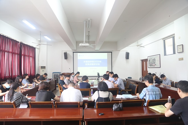 刘伯贤副书记、顾琦一副院长、朱义华副院长、谢竞贤副院长分别围绕学生工作、第五轮学科评估、大学英语学习效果综合评价体系的建构、一级点申报工作推进作主题报告。