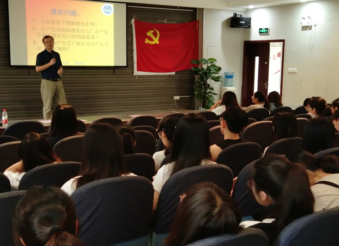 党委副书记、副院长刘伯贤为大家带来开班第一讲:认识中国共产党。刘书记主要从党的性质、党的宗旨、党的指导思想、党的奋斗目标和同心共筑“中国梦”这五个方面由浅入深逐一展开详细的讲述,并像大家推荐一些关于中国共产党建国、建党、建军方面的书籍和影视作品,鼓励同学们多媒介全方位了解党的历史进程。在短暂课间休息后,马克思主义学院陈永杰教授为学员们展开第二讲:如何理解《共产党宣言》。他以三个问题为引线,从四个角度阐释如何理解《共产党宣言》,最终回归问题的答案,深入浅出的分析让同学们对共产党员的标准和共产党人的宗旨有了进一步的深刻感悟和理解。
