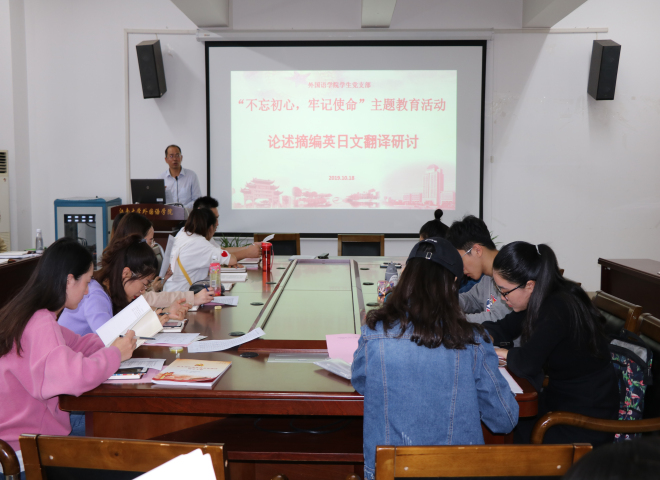 学生党支部开展了“不忘初心、牢记使命”主题教育英日文翻译研讨会,学生党支部全体党员参加了此次主题教育活动。