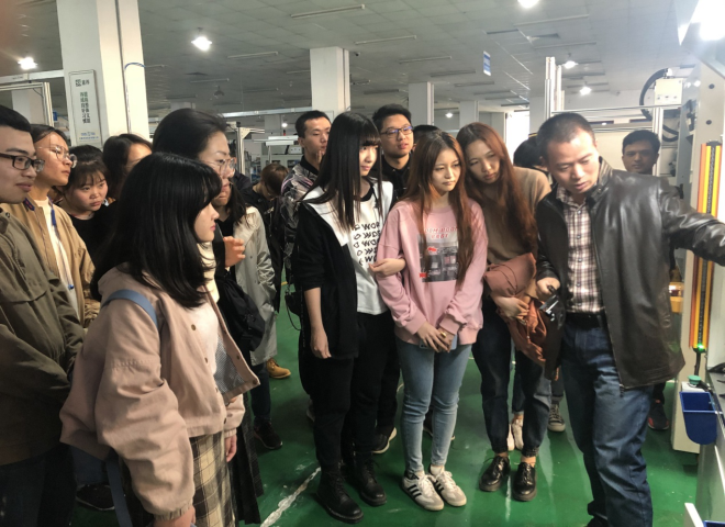 在公司门厅张总给我们介绍了墙上挂满的公司获得的证书、专利以及校企合作基地的情况,让我们感悟到一个从民营乡镇企业做成上市公司的不易。然后我们进入企业车间参观实际的机械工作区。区内,一些身着工作服的员工一丝不苟地操作着各种复杂的机械设备。在仪器边,项目的负责人给参观的同学们耐心地讲解各种设备的功能和运作原理,让大家学到了不少新的知识。