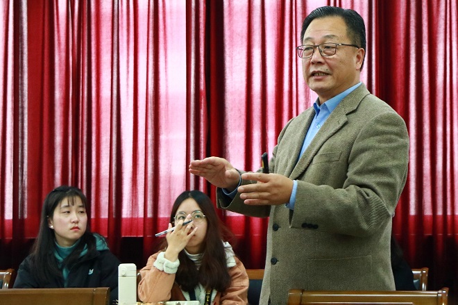 张爱平教授在讲学中