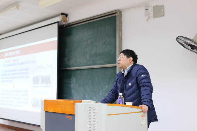 陈校长以百年未有之大变局开篇。在讲到“以立德树人铸就教育之魂,高等教育改革新视界”时,陈校长指出,时代在变、世界在变,我们正处于时代的浪潮中,即将迎来大机遇、大挑战、大趋势。陈校长在讲到全球格局的巨大变化时说;中美贸易战的本质是科技战,科技战的本质是人才战,人才战的本质是教育战。接着陈校长从价值问题与路径问题两方面提出设问并解释了我国为何重视高等教育。他强调,实现中华民族伟大复兴,教育的地位和作用不可忽视,立德树人是教育要面对的重大时代命题,是教育工作者的初心和使命。
