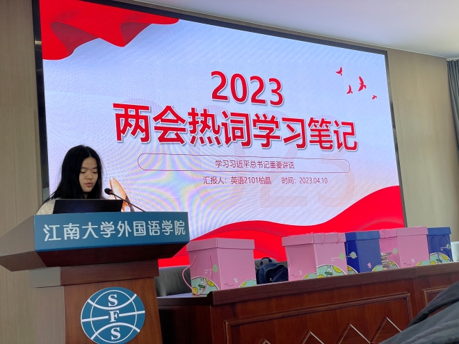 柏晶同学基于“两会”报告原文,聚焦“中国式现代化”、“全面建设社会主义现代化国家”、“稳中求进”等22个热词向同学们进行了解读,使同学们更好地了解“两会”内容,领悟“两会”精神。通过这一环节的学习,同学们对于“两会”的认识也更加深刻,并表示要将党和国家的大政方针内化于心、外化于行。