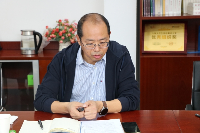 二级学院关工委优质化建设首批申报单位,娄国栋充分肯定了学院关工委各项工作的开展。他指出优质化建设的落足点一是要进一步完善“党建带关建”的工作机制,二是要抓重点岗位建设,发挥好关工委常务副主任、特邀组织员、特邀报告员、老党员、青年教师导师等角色作用,三是要以评促建,达到“优势加强,薄弱补足”的成效。