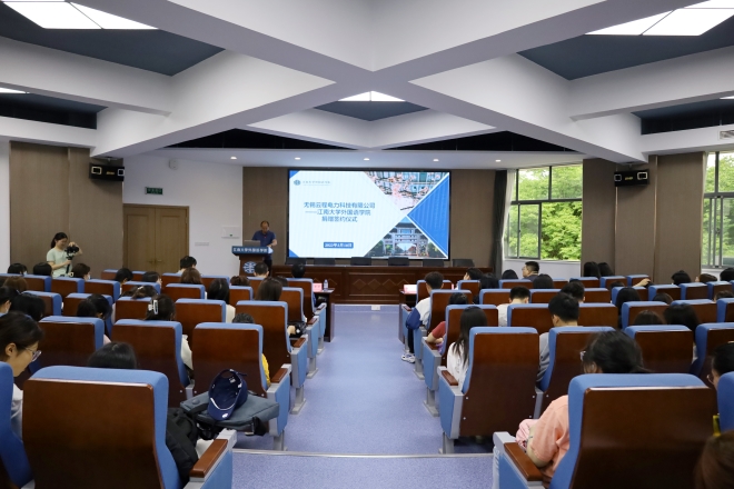 于君金报告厅举办无锡云程电力科技有限公司捐赠仪式暨第二十三期“遇见更好的自己”名师讲座。无锡云程电力科技有限公司董事长宋琬若、首席执行官盛昊、公司行政经理刘丽、动漫屋