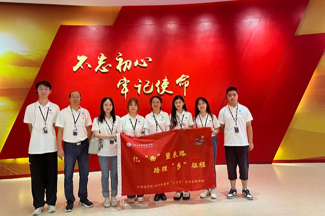党委副书记刘伯贤、分团委书记顾海星以及辅导员朱家烨老师,带领“译路生花”社会实践团,前往河北省石家庄市平山县、正定县、灵寿县、辛集市等地开展社会实践。实践团先后寻访革命圣地西柏坡、正定县博物馆、塔元庄村、河北省专精特新示范企业等地,追寻红色足迹,赓续革命精神,传承优秀文化,助力乡村振兴,共话校企合作。