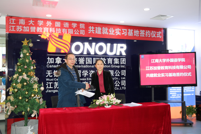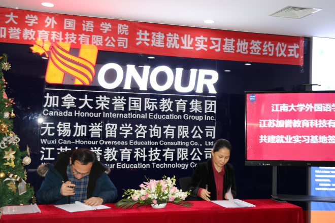 与江苏加誉教育科技有限公司共建学生实习基地签约仪式在江苏加誉教育科技有限公司会议室举行。学院院长方文开、党委副书记刘伯贤、副院长朱义华、江苏教育科技有限公司总经理孟丽敏、副总经理肖莉、教育专家Richard博士、教学总监Ruby老师参加了签约仪式。