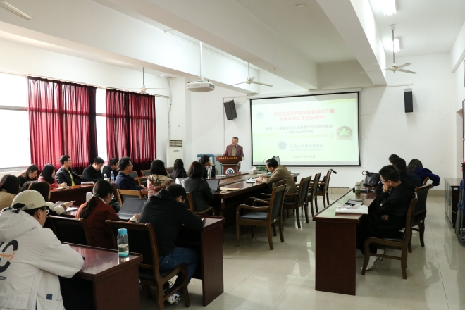 院长方文开、英语系主任孙志祥、英语系老师以及英语专业本科、研究生同学参加本次讲座。讲座由方文开主持。