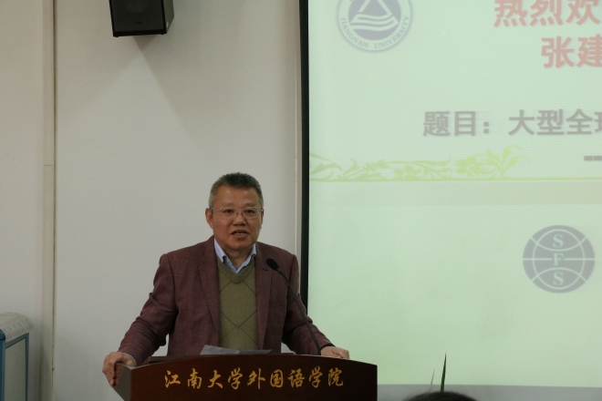 张建农老师,曾任华为首席笔译员,华为2012实验室南研分部部长等。他著有《华为英文风格手册》《华为界面英语指南》等,曾翻译各类资料350万字以上,审校3000多万字。首先,张建农老师向在座师生详细讲述了华为公司译员全球化、本地化的独特和核心价值。张老师将这三个方面一一详细说明,并以一些生动具体的例子加以阐释。