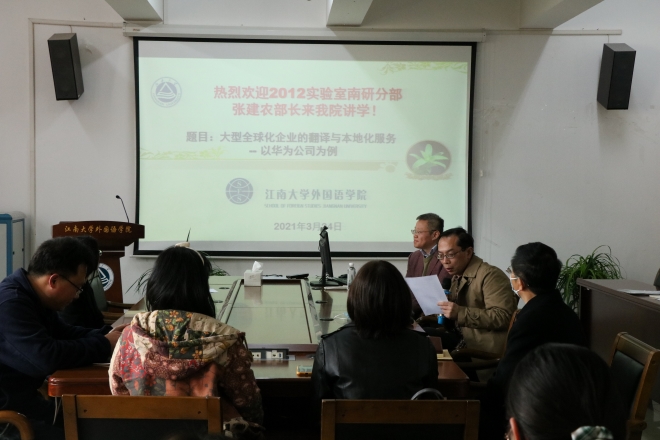 2021外语学科系列讲座之一暨第十一期“遇见更好的自己”名师沙龙在学院A349会议室举行。本次讲座邀请张建农老师主讲,讲座题目为“大型全球化企业的翻译与本地化服务—以华为公司为例”。动漫屋