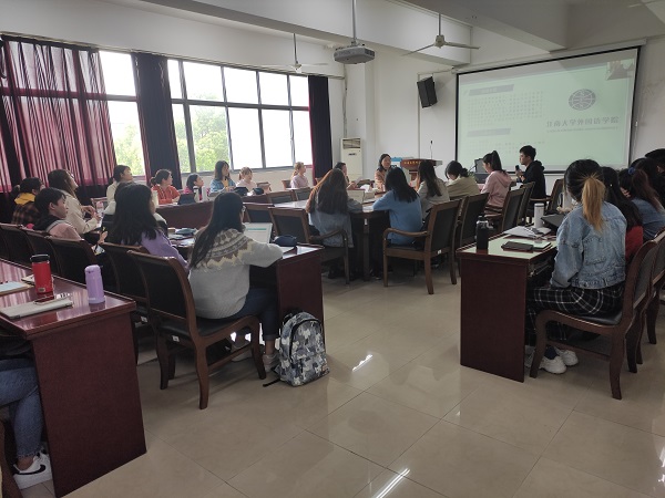 方文开院长、谢竞贤副院长全程观摩了本次活动。2020级全体硕士研究生及于线下参与了本次活动,2018级、2019级全体硕士研究生通过钉钉直播参与了本次活动。部分感兴趣的英语专业大四本科生也闻讯前来现场聆听分享。