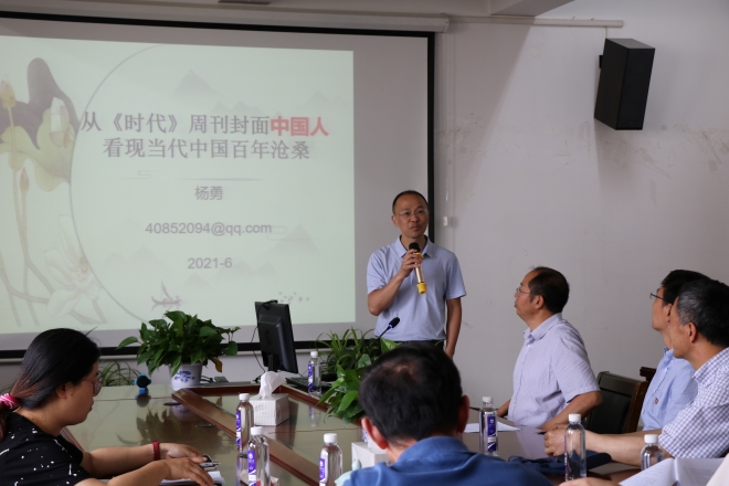 接着,杨勇教授从《时代》周刊简介、上过《时代》周刊封面的中国人、从《时代》周刊封面中国人看现当代中国历史的沧桑三个方面开展了一场生动有趣的讲座,将上过时代周刊的中国人及其所处的时代背景和社会影响娓娓道来,带领全场回顾了中国历史的沧桑巨变。