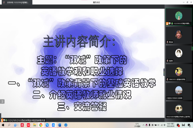 钱薇薇老师线上参与主讲“双减政策下的英语教学观和职业选择”主题圆桌会,会议持续一小时左右,吸引了来自动漫屋