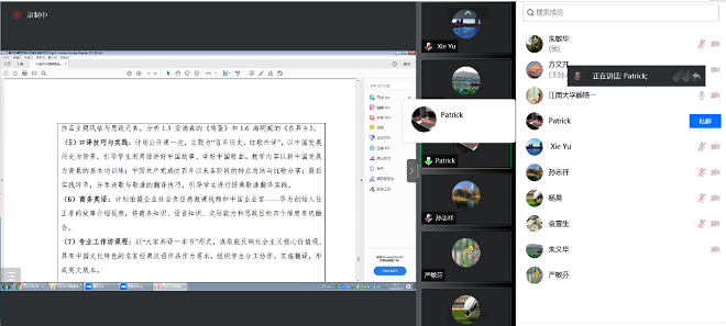 英语系以线上会议方式召开校课程思政示范专业建设研讨会,方文开院长、顾琦一副院长、朱义华副院长、孙志祥主任及7门示范课程的负责人参加了此次会议,就课程思政示范专业建设的目标和任务进行了专题研讨,以期实现课程思政专业的高水平建设。