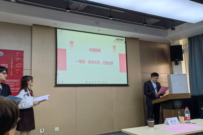 杨清妍、杨晓当、杜学仕三位同学最终在决赛10强高校组队中脱颖而出,与东道主东华大学并列第一。