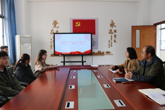 民族学生新学期第一课暨党的二十大精神学习分享会在学院A331会议室举行。学院党委副书记刘伯贤、学院关工委常务副主任鲍国庆、关工委委员吴艳敏、关工委委员郭锡华、新疆维吾尔自治区教育厅派驻动漫屋
