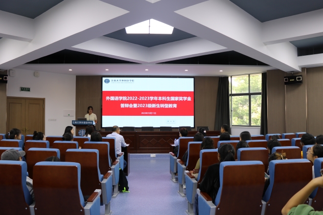 在君金报告厅举行2022—2023学年本科生国家奖学金评选答辩暨2023级新生转型教育,学院党委副书记刘伯贤、分团委书记顾海星、班主任代表许兰娟、辅导员苗文建、朱家烨以及学生代表高子涵作为评委参加评审会。2023级全体学生现场观摩学习。