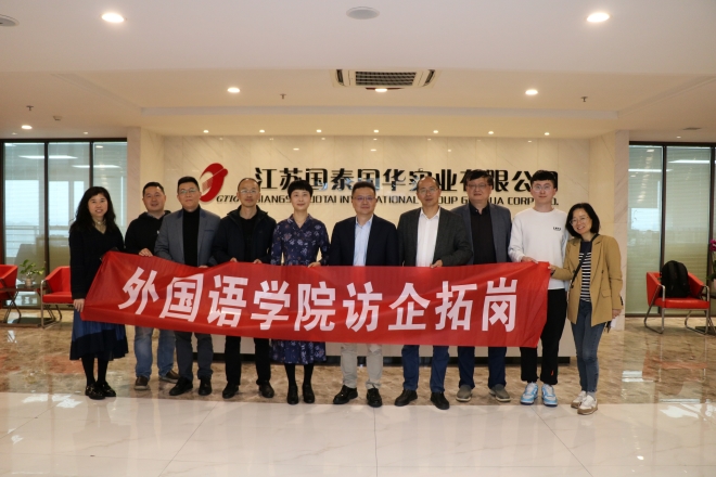 党委书记李荣华、党委副书记刘伯贤、英语系主任杨勇、社会资源与校友联络部主任程方、辅导员苗文建以及学生代表前往江苏国泰华盛实业有限公司、江苏国泰国华实业有限公司开展访企拓岗促就业专项活动。