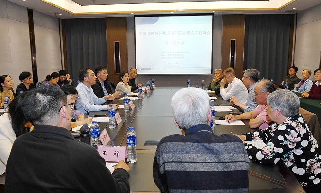 共同承办的无锡市规范公共场所外语标识专家委员会第一次会议在我校隆重召开。中国翻译协会常务副会长、中国翻译研究院副院长黄友义,中国翻译协会常务副会长兼法律委员会主任、全国翻译专业资格(水平)考试英语专家委员会副主任王刚毅,原外交部翻译室主任、资深外交官陈明明大使,原外交部翻译室主任、资深外交官徐亚男大使,中国日报评论部评论员、高级记者朱渊等无锡市规范公共场所外语标识专家委员会专家参加了会议。无锡市外办副主任叶诤等出席会议。